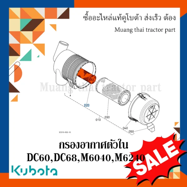 ✅ กรองอากาศตัวในแท้จาก KUBOTA สำหรับรถแทรกเตอร์รุ่น DC60, DC68, M6040 และ M6240