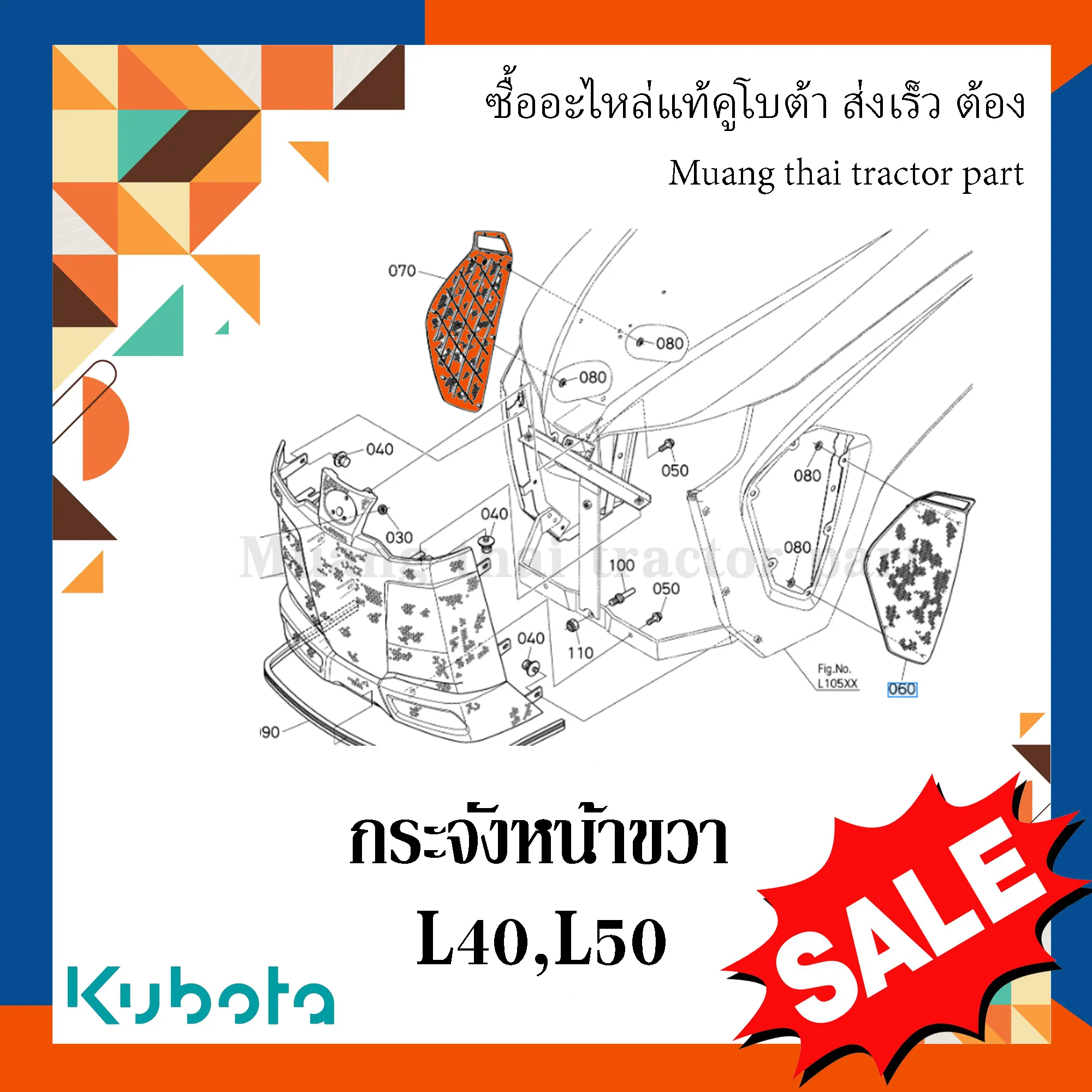 ✅ กระจังหน้าขวา สำหรับรถแทรกเตอร์ KUBOTA รุ่น L4018DT และ L5018DT