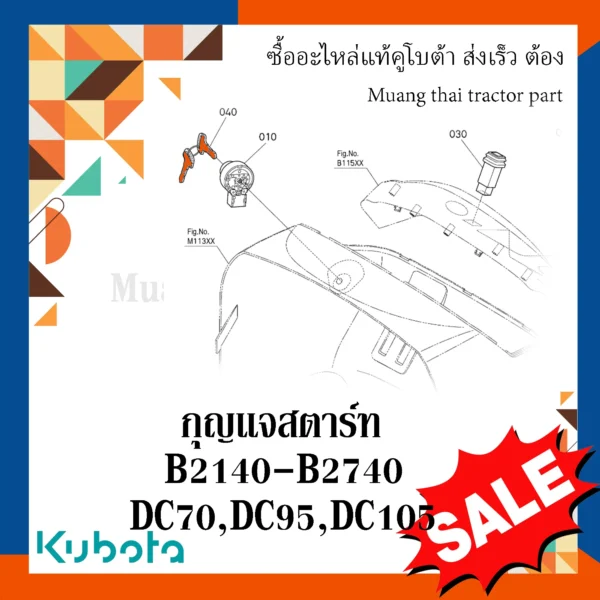 กุญแจสตาร์ท 2 ชิ้น รถแทรกเตอร์ KUBOTA รุ่น B2140 – B2740 / DC70 / DC95 / DC105 รหัส 15248-63700