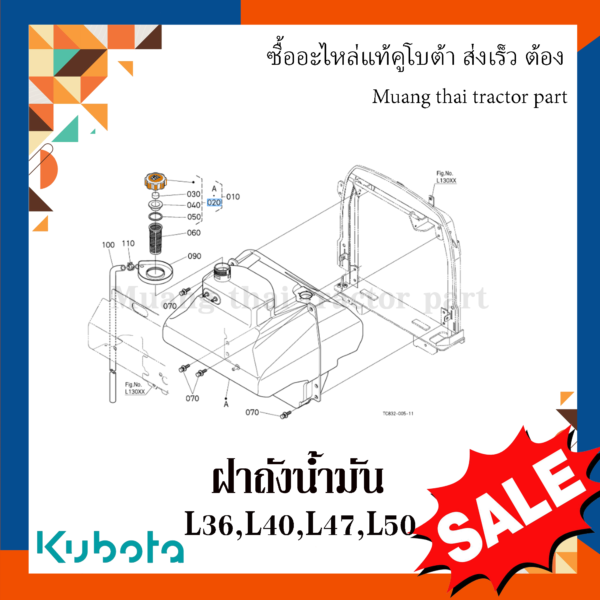 ชุดฝาถังน้ำมัน รถแทรกเตอร์คูโบต้า ขนาดขอบด้านใน 52 มม. รุ่น L3608, L4018, L4708, L5018 tc402-42022
