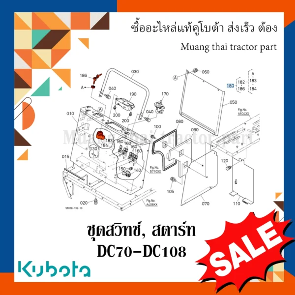 ✅ ชุดสวิทช์สตาร์ท พร้อมกุญแจ สำหรับรถเกี่ยวข้าว KUBOTA รุ่น DC70 ถึง DC108