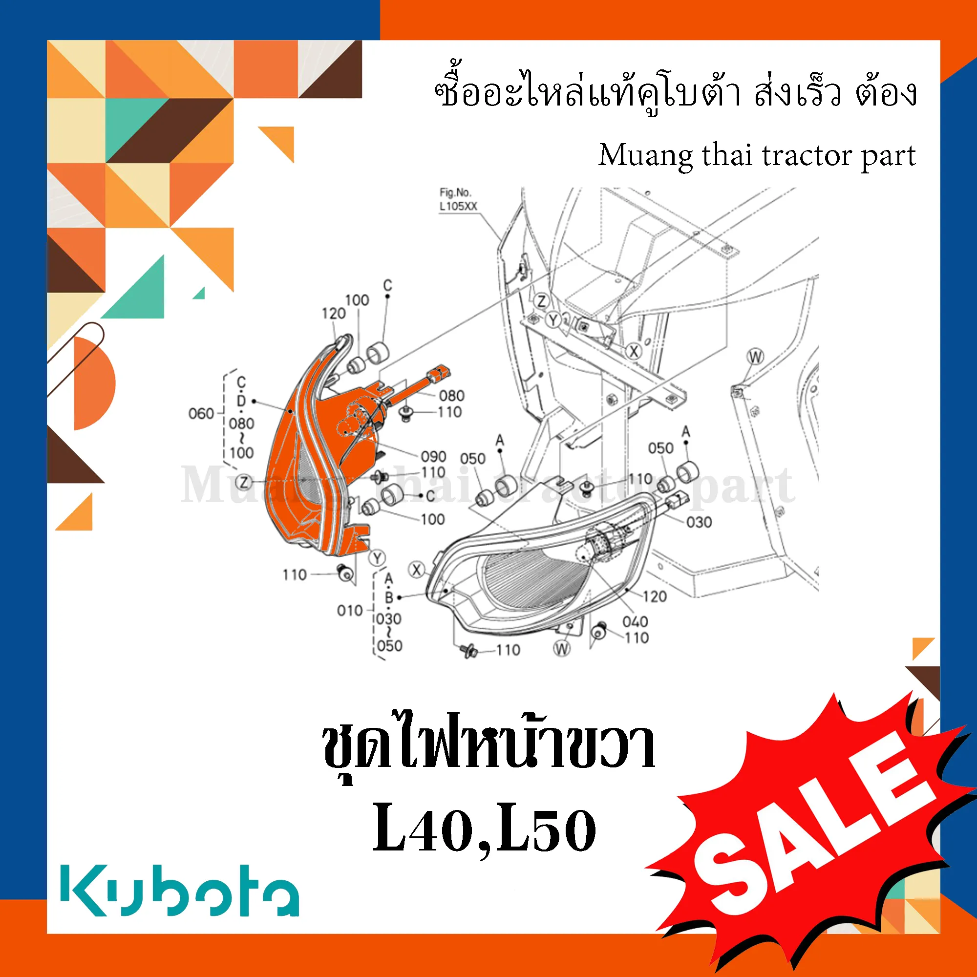 ✅ ชุดไฟหน้าฝั่งขวา สำหรับรถแทรกเตอร์ KUBOTA รุ่น L4018, L5018