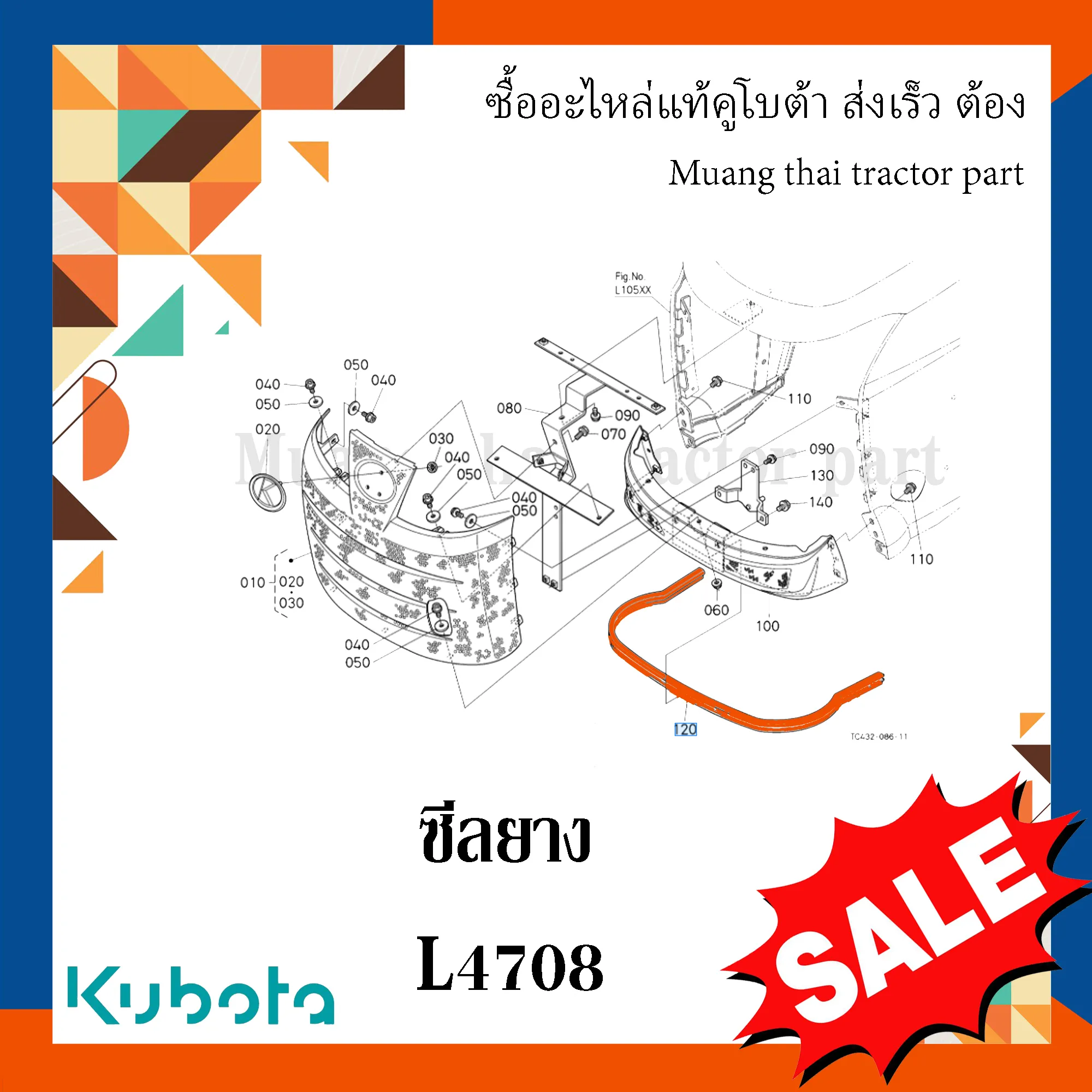 ซีลยางฝากระโปรงหน้า รถแทรกเตอร์คูโบต้า รุ่น L4708 TC432-41070