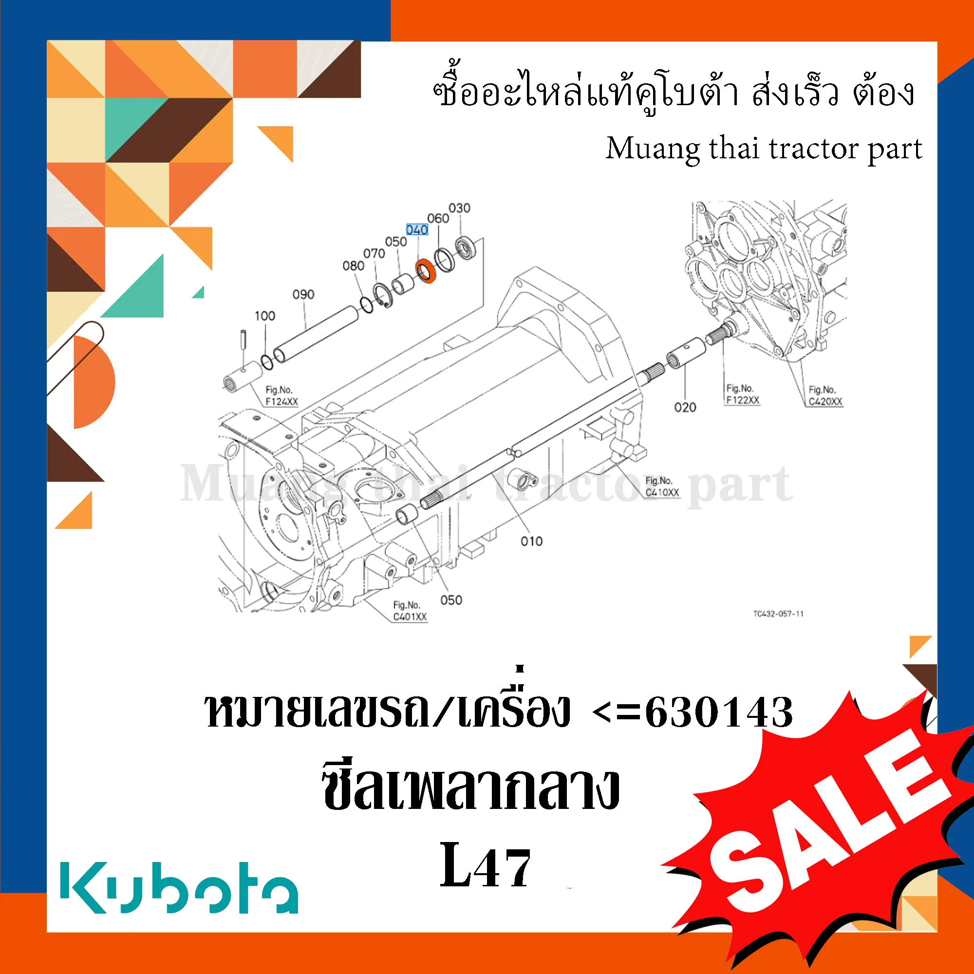 ✅ ซีลเพลากลาง สำหรับรถแทรกเตอร์ KUBOTA รุ่น L4708