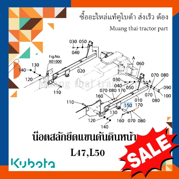 ✅ น็อตสลักยึดแขนดันดินหน้า สำหรับรถแทรกเตอร์ KUBOTA รุ่น L4708, L5018
