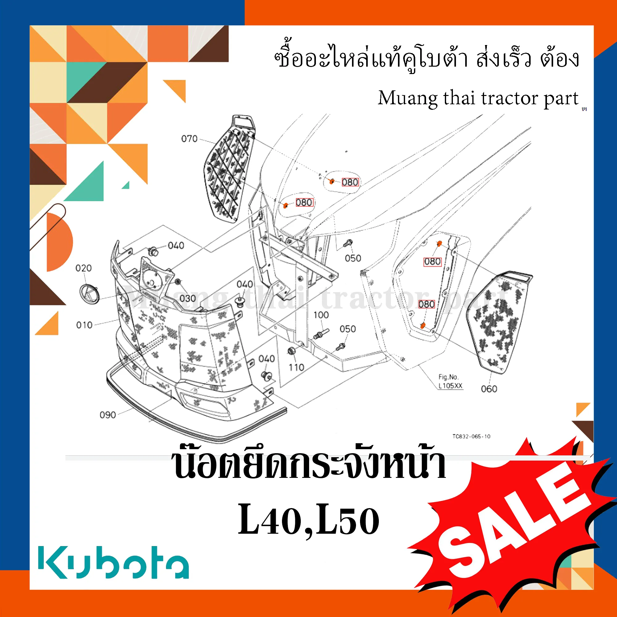 ✅ น๊อตยึดกระจังหน้า สำหรับรถแทรกเตอร์ KUBOTA รุ่น L40, L50