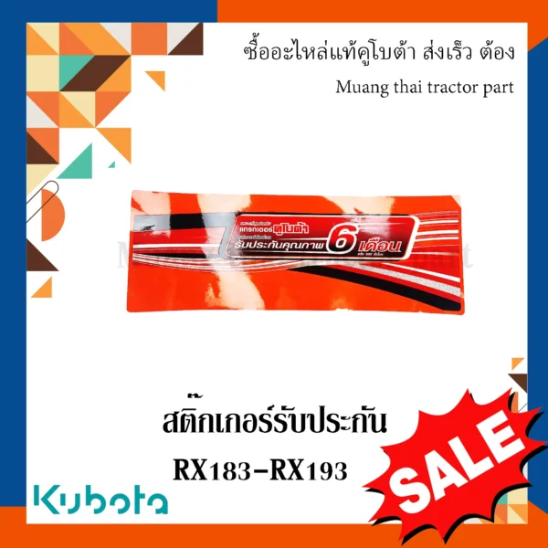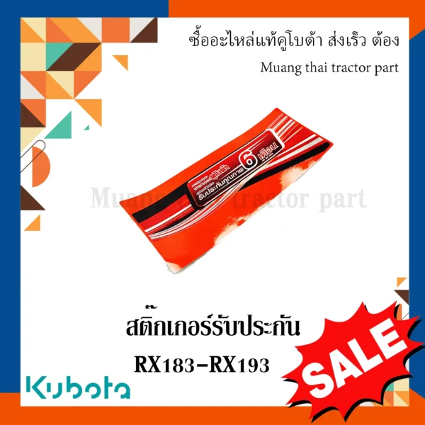 สติ๊กเกอร์รับประกันสำหรับโรตารี่รถแทรกเตอร์ Kubota ใช้ติดบนตัวเครื่องหรือฝาครอบของโรตารี่รุ่น RX183 และ RX193