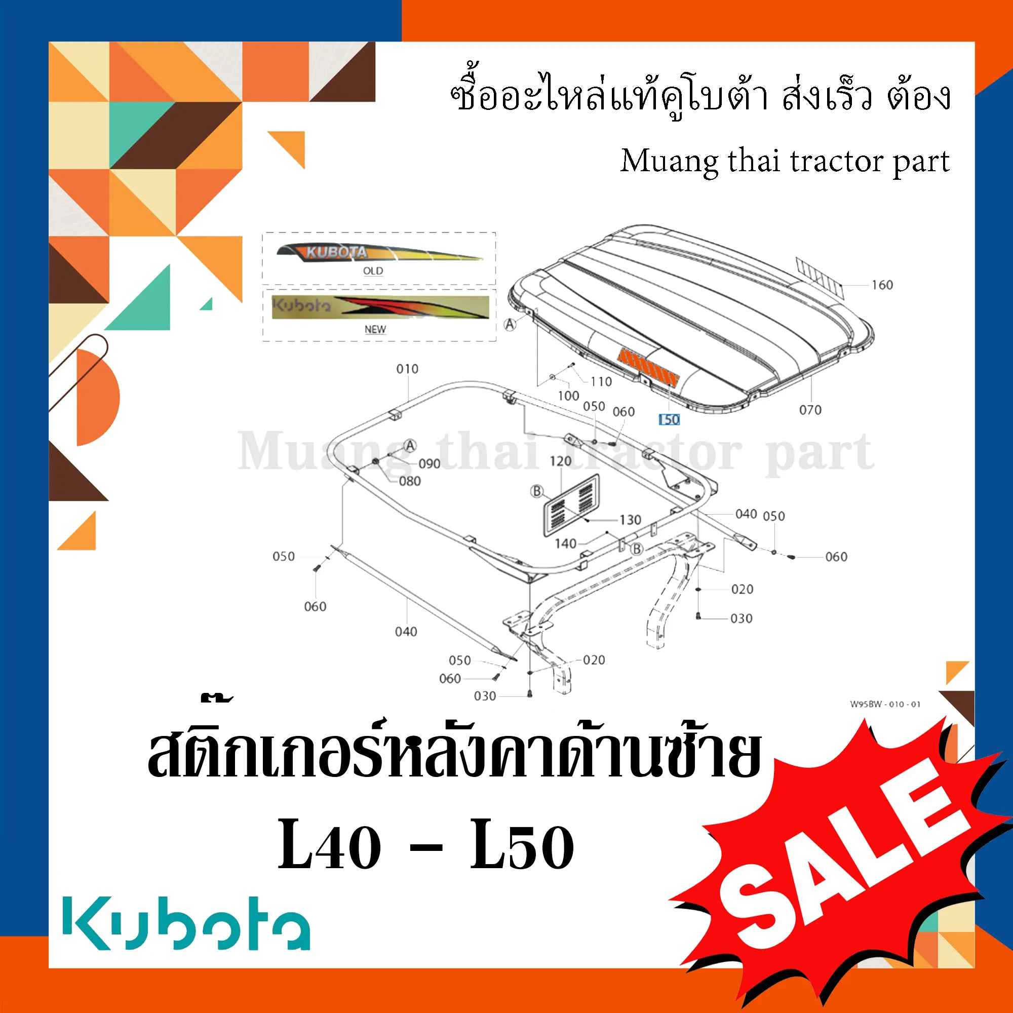 📝 สติ๊กเกอร์หลังคาด้านซ้าย รถแทรกเตอร์ Kubota รุ่น L4018 / L5018 – รหัส W9500-44311