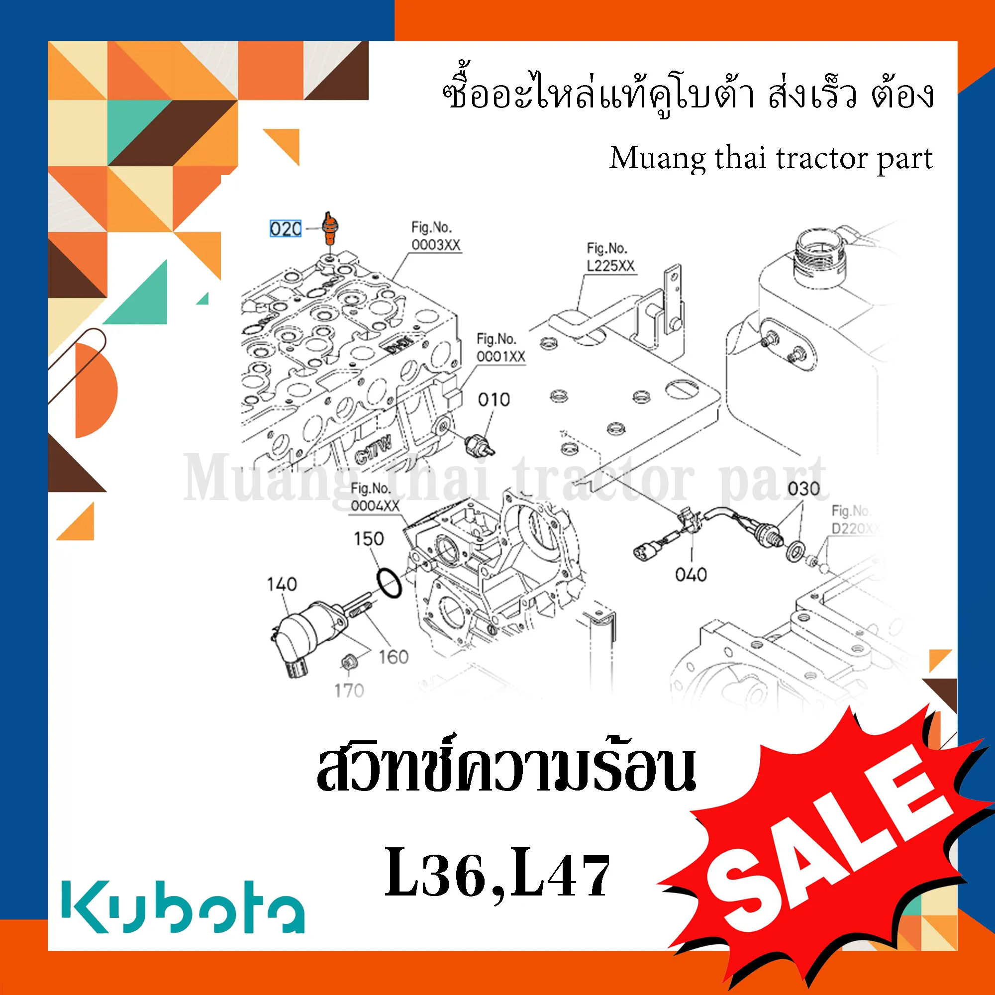 ✅ สวิทช์ความร้อน สำหรับรถแทรกเตอร์ KUBOTA รุ่น L3608 และ L4018