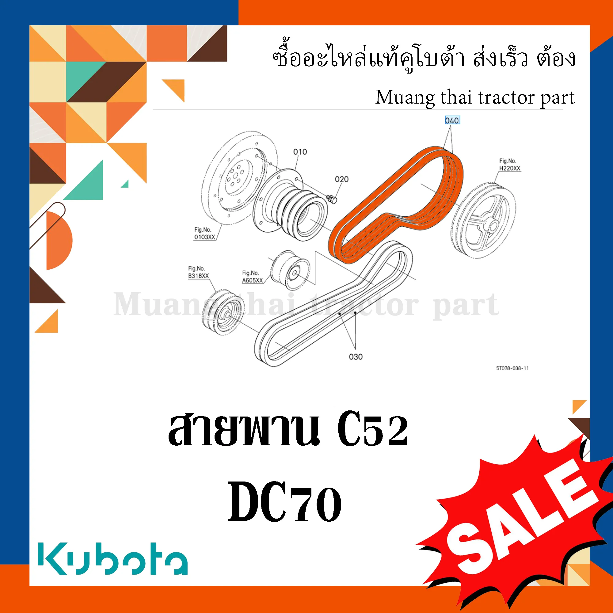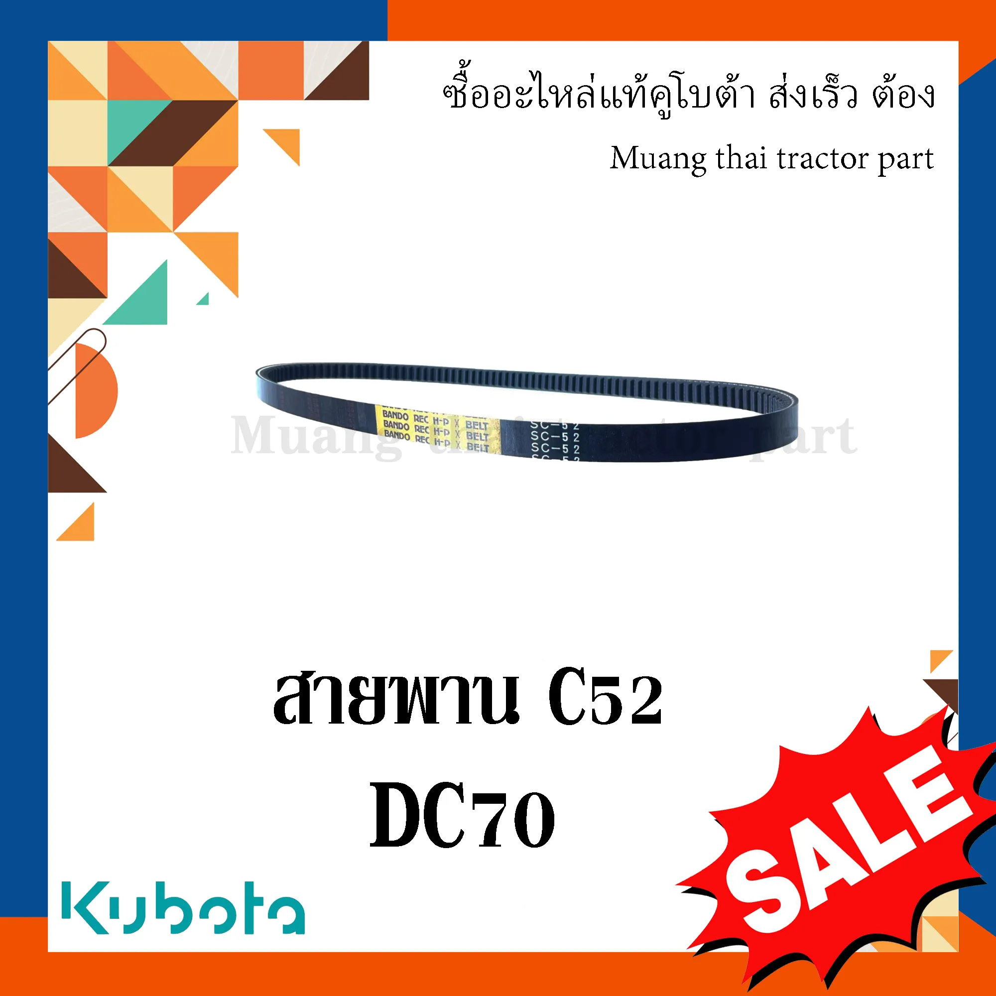 ✅ สายพาน C52 สำหรับรถเกี่ยวข้าวคูโบต้า รุ่น DC70