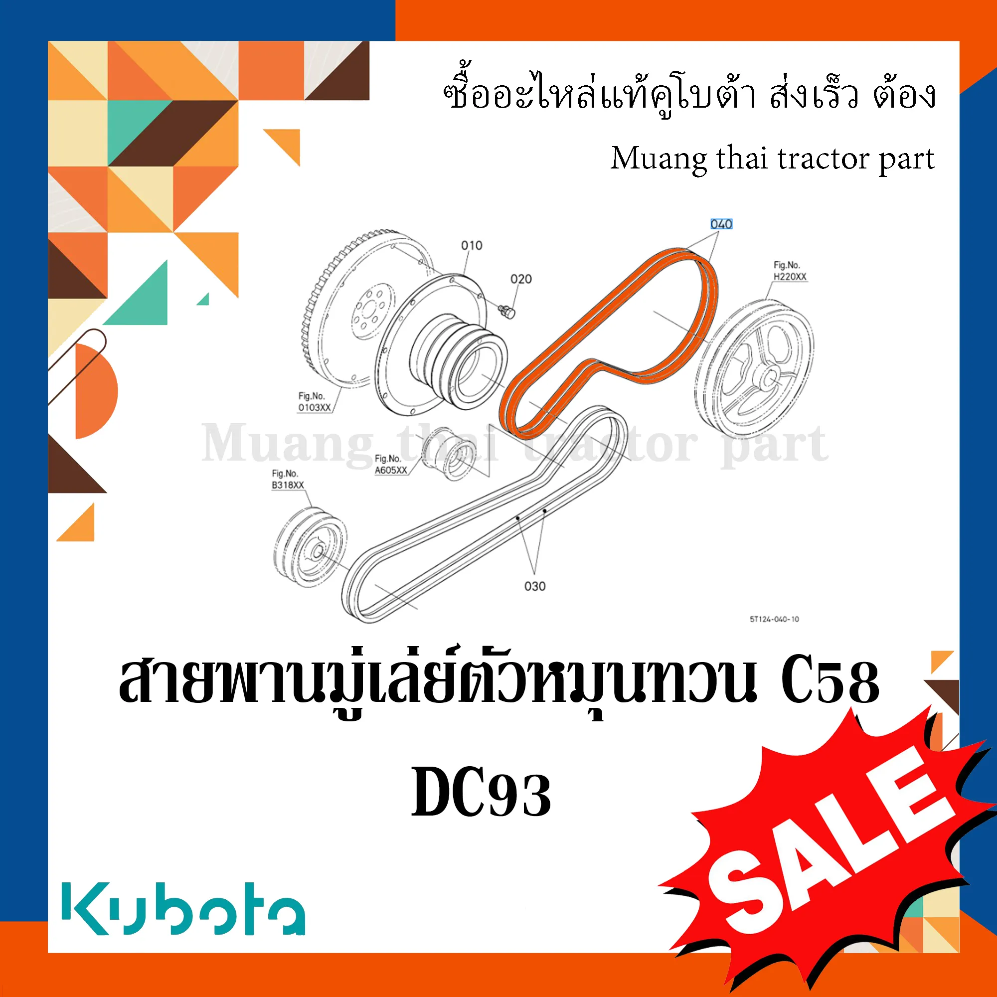 สายพาน C58 มู่เล่ย์ตัวหมุนทวน รถเกี่ยวข้าวคูโบต้า รุ่น DC93 5T124-11570