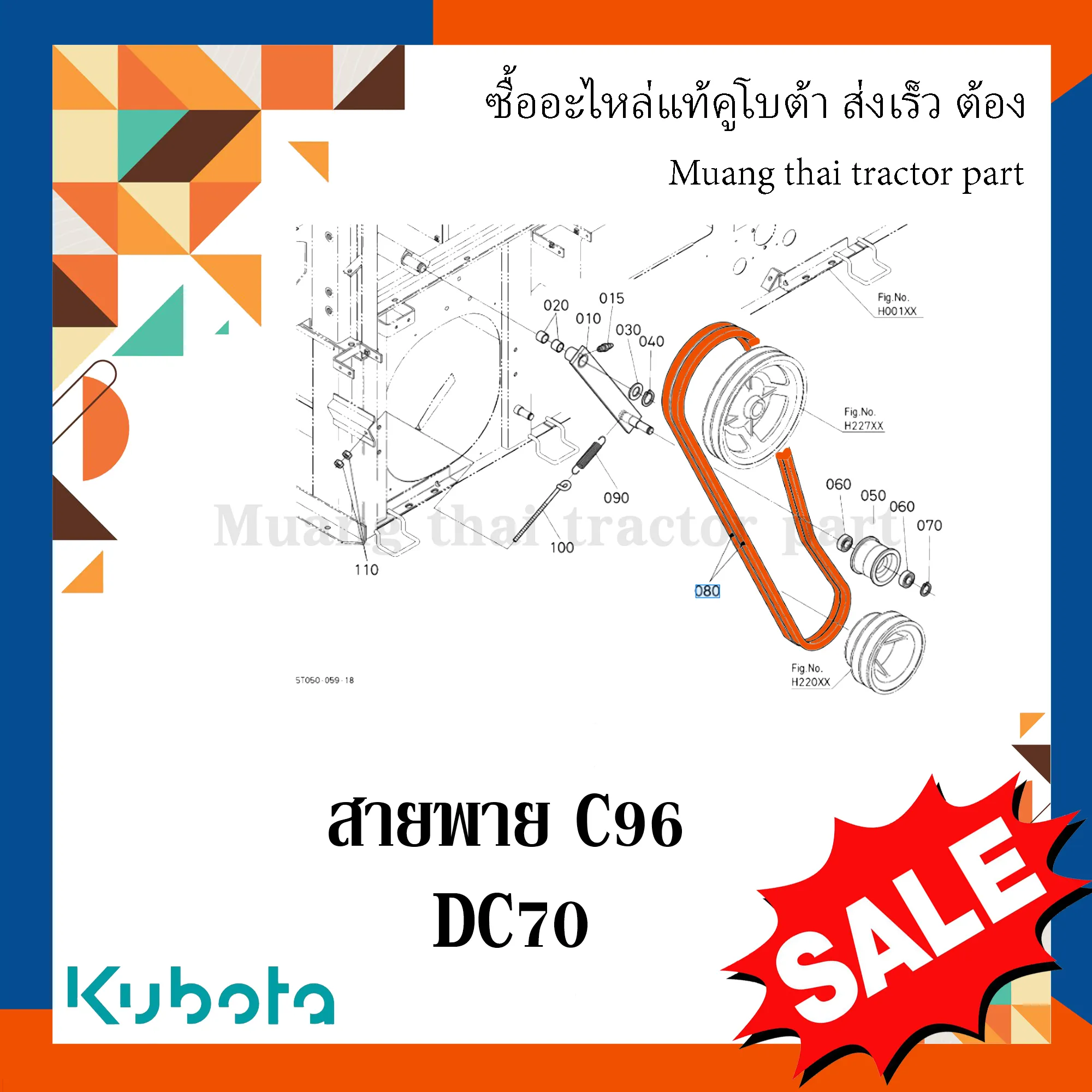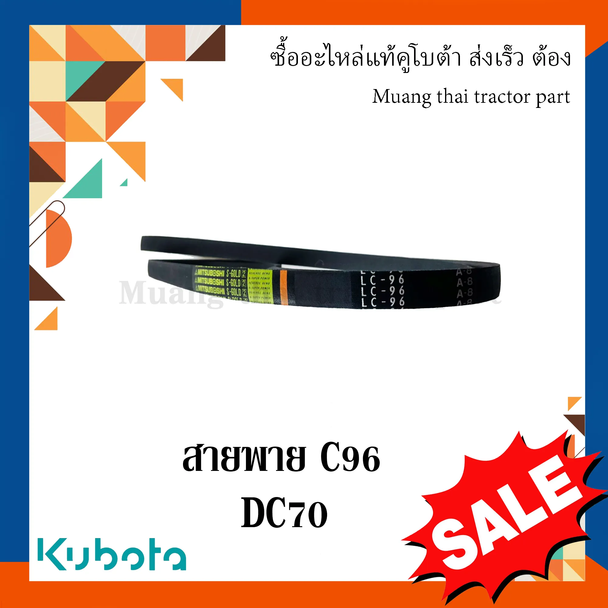 สายพาน C96 แขนปรับความตึงลูกนวด รถเกี่ยวข้าว KUBOTA รุ่น DC70 รหัส W9503-22000