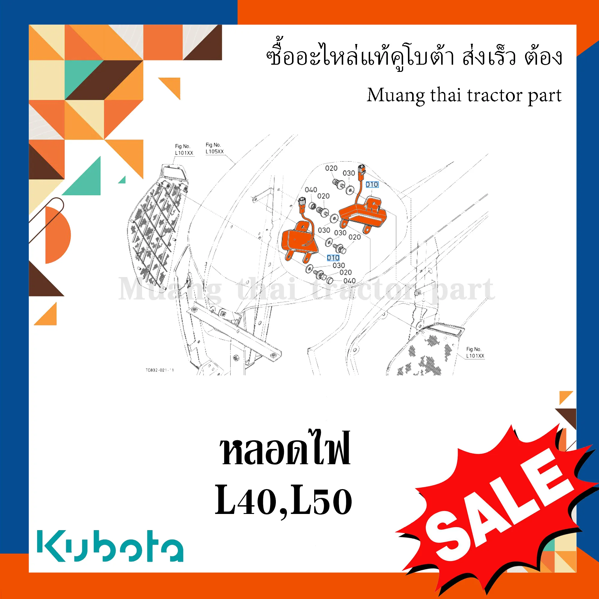 ✅ หลอดไฟสำหรับติดตั้งบริเวณกระจังหน้าด้านข้าง เพื่อเพิ่มแสงสว่างในการทำงาน รถแทรกเตอร์ KUBOTA รุ่น L4018, L5018
