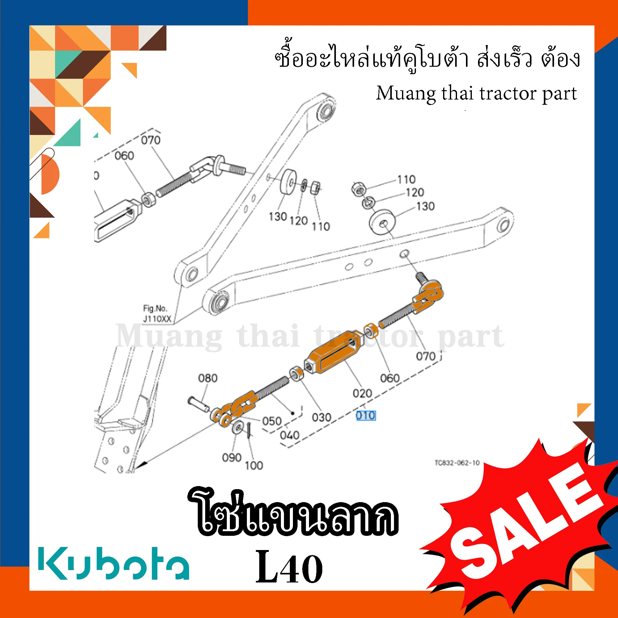 ✅ โซ่บังคับ หรือ ชุดโซ่แขนลาก ใช้สำหรับควบคุมและยึดตำแหน่งของแขนลากด้านล่างให้มั่นคงขณะใช้งานอุปกรณ์ต่อพ่วง รถแทรกเตอร์ KUBOTA รุ่น L4018