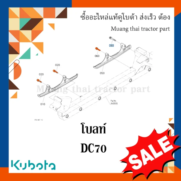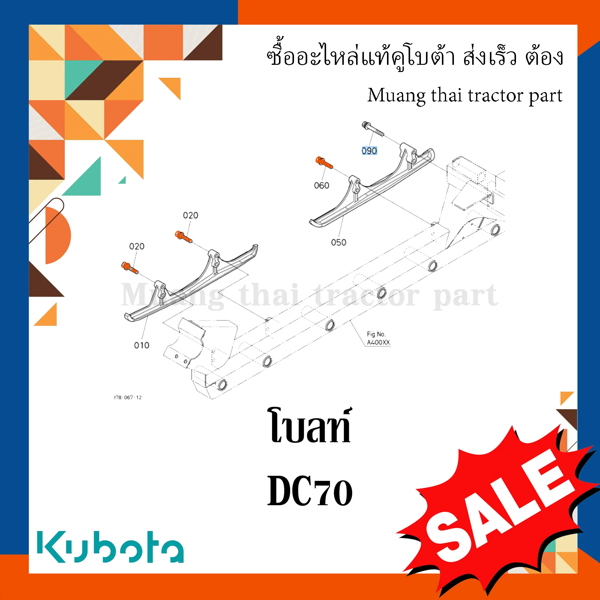 โบลท์ยึดเหล็กประครอง โบลท์ตัวสั้น รถเกี่ยวข้าว KUBOTA รุ่น DC70 รหัส 5T072-23480