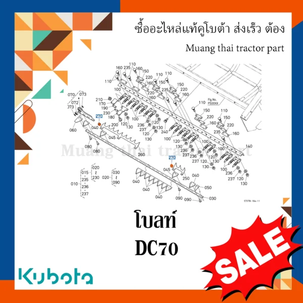 ✅ โบลท์สำหรับยึดใบตัด รถเกี่ยวข้าวคูโบต้า รุ่น DC70